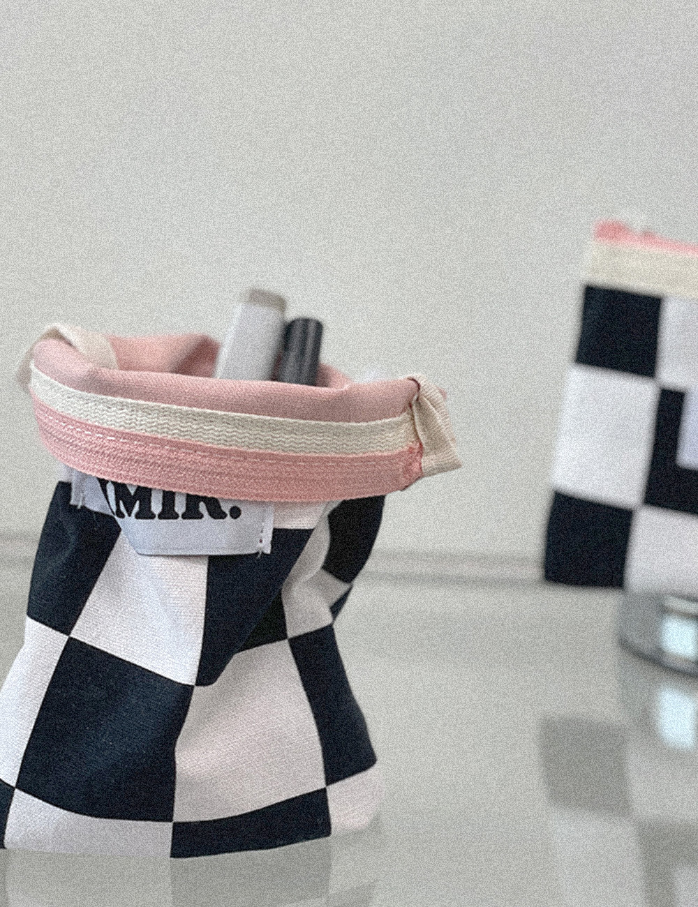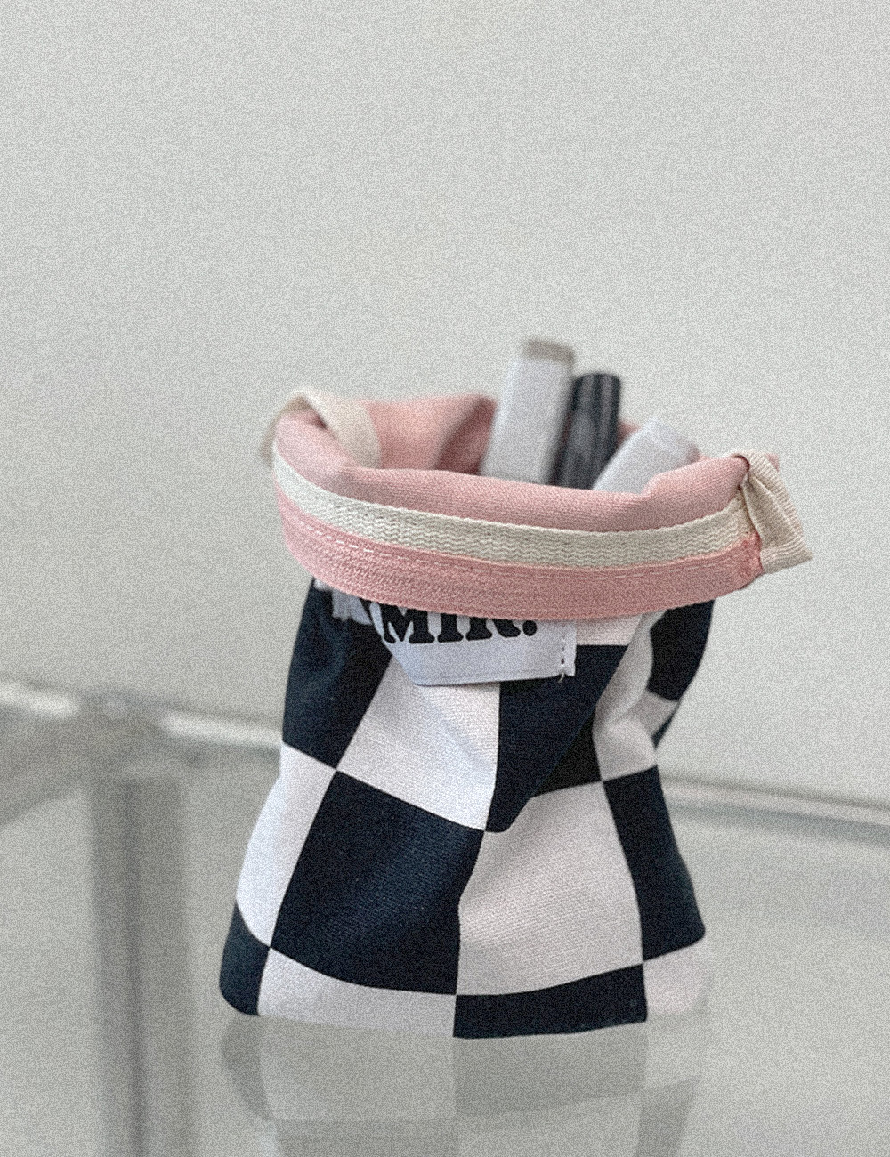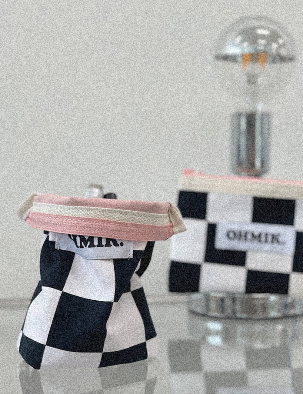 내부에 여유 폭을 두어 사용에 따라 공간이 확장 가능한 오미크 시그니처 파우치입니다.