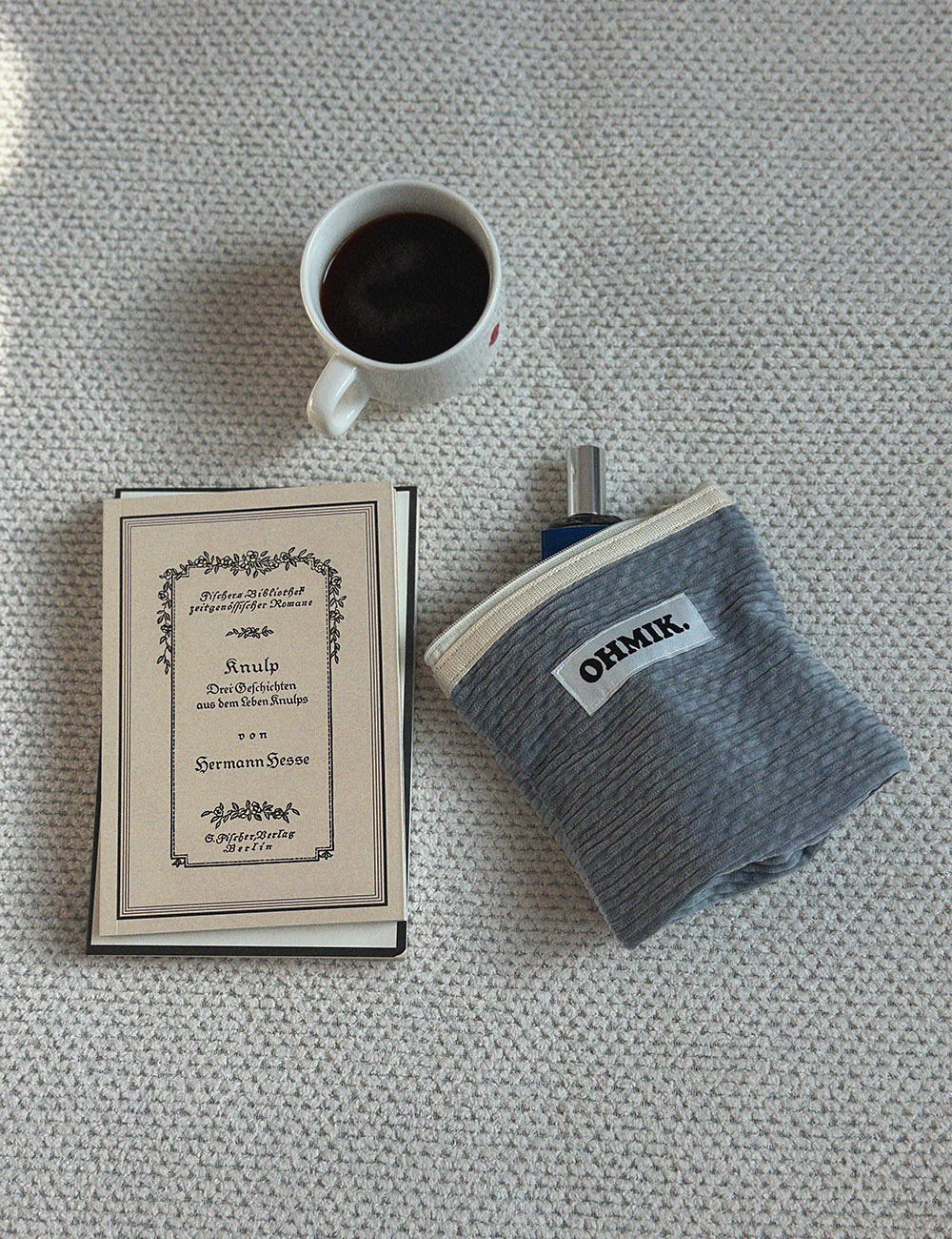 내부에 여유 폭을 두어 사용에 따라 공간이 확장 가능한 오미크 시그니처 파우치입니다.