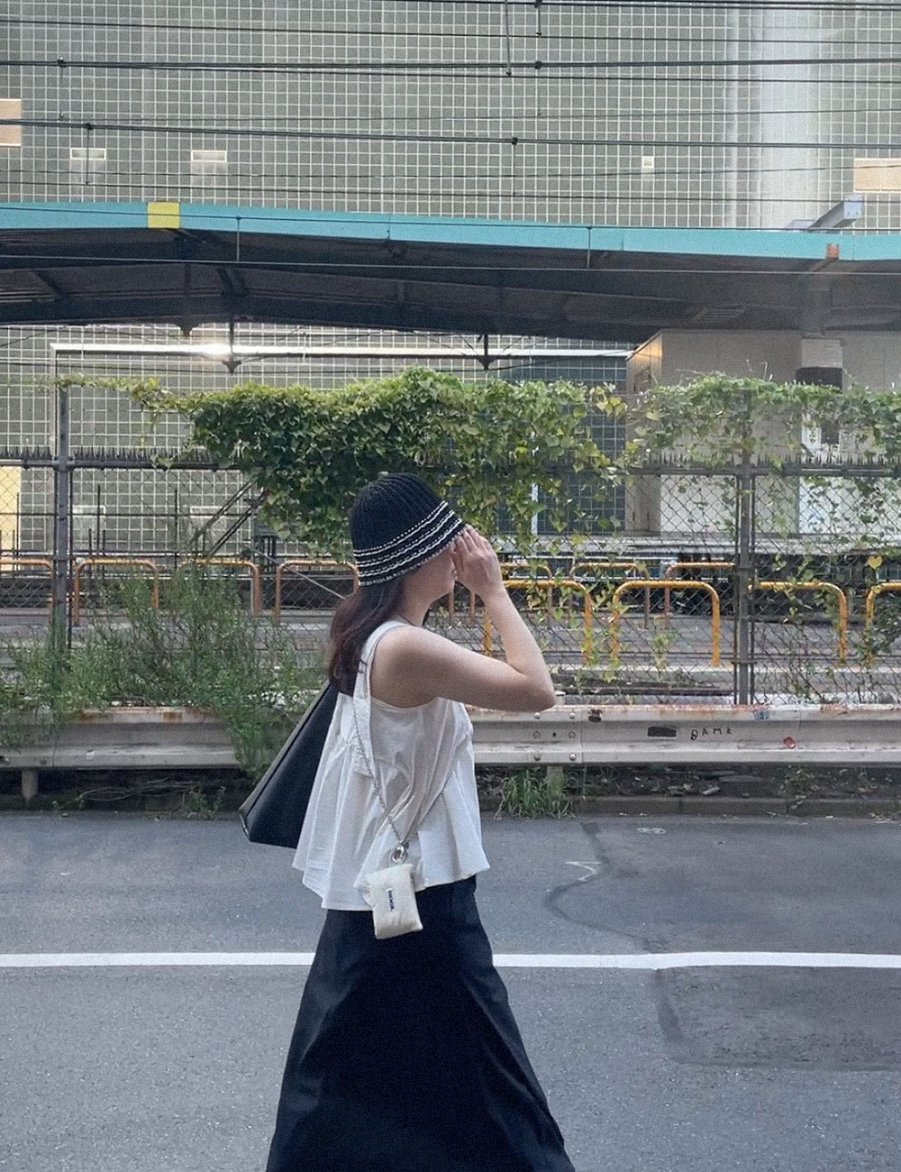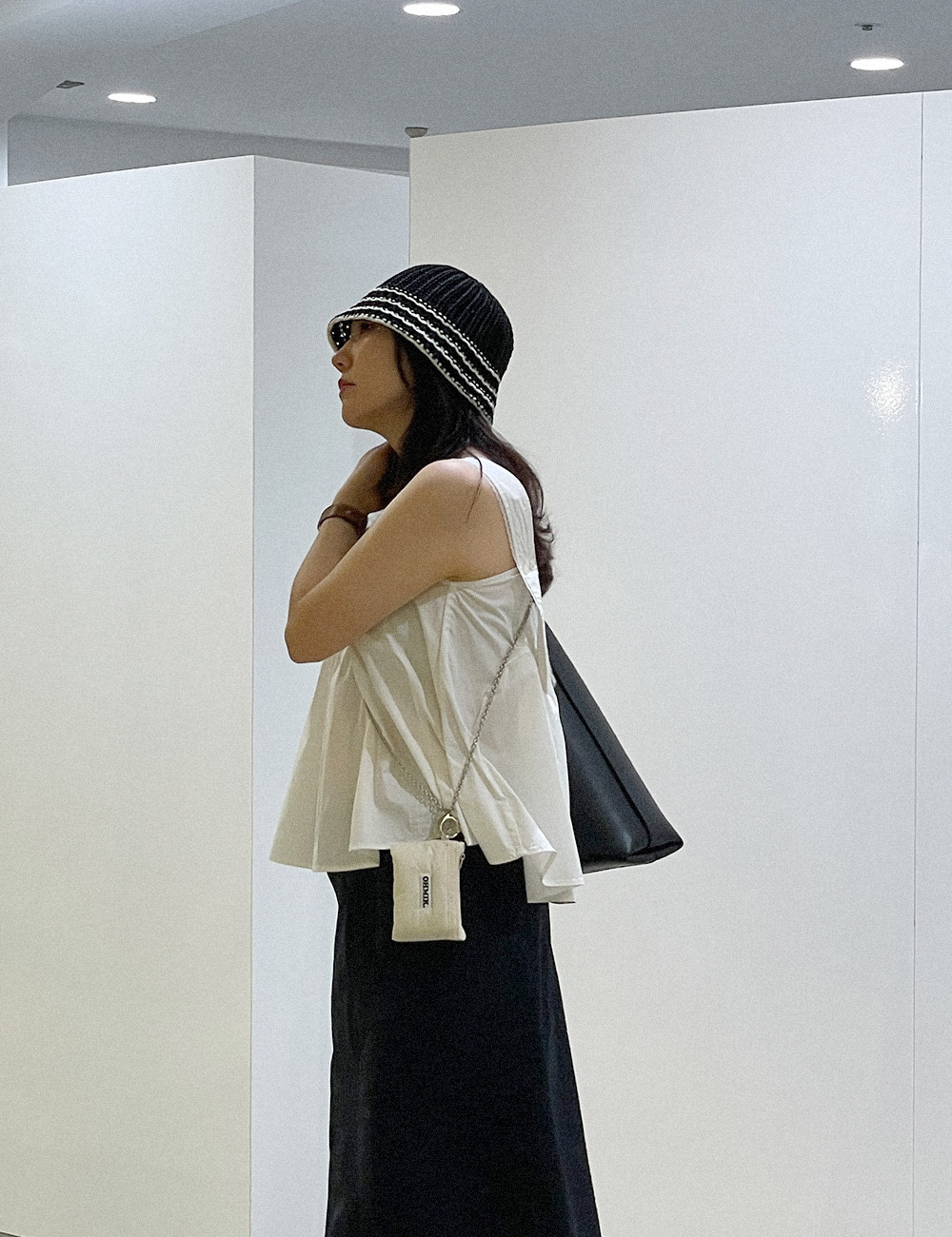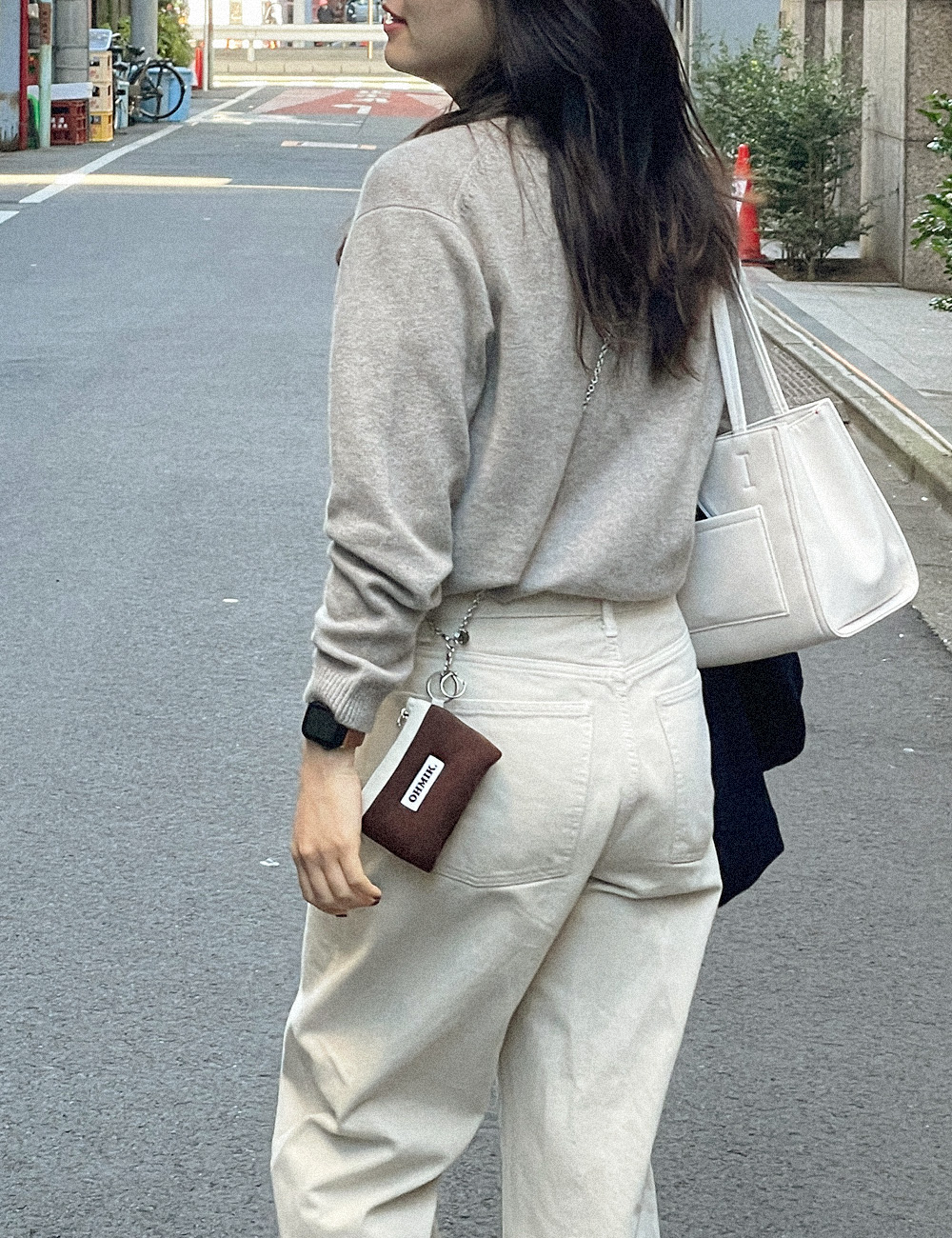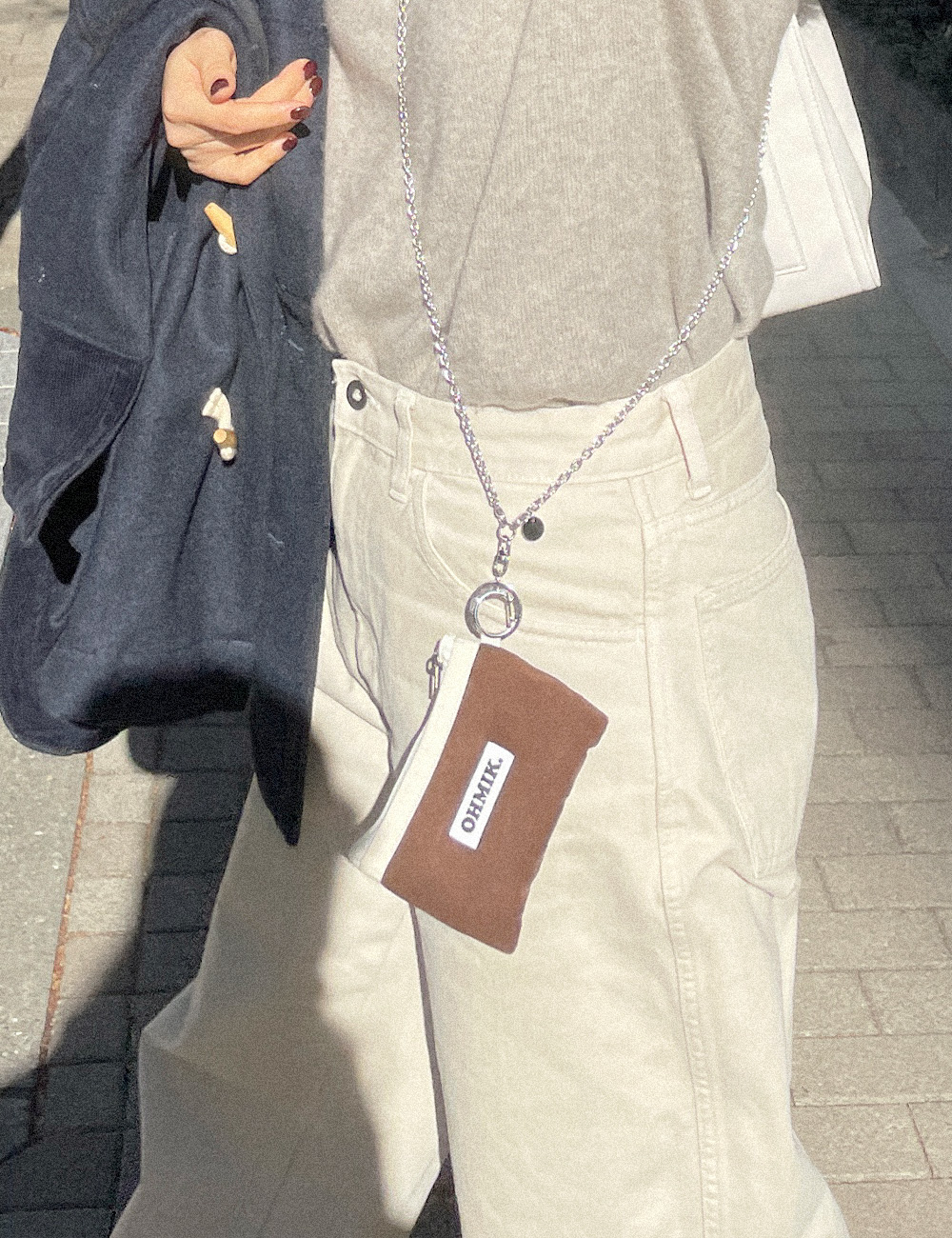 실버컬러의 체인으로 좀 더 스타일리쉬하게 미니백처럼 연출해 보세요.
