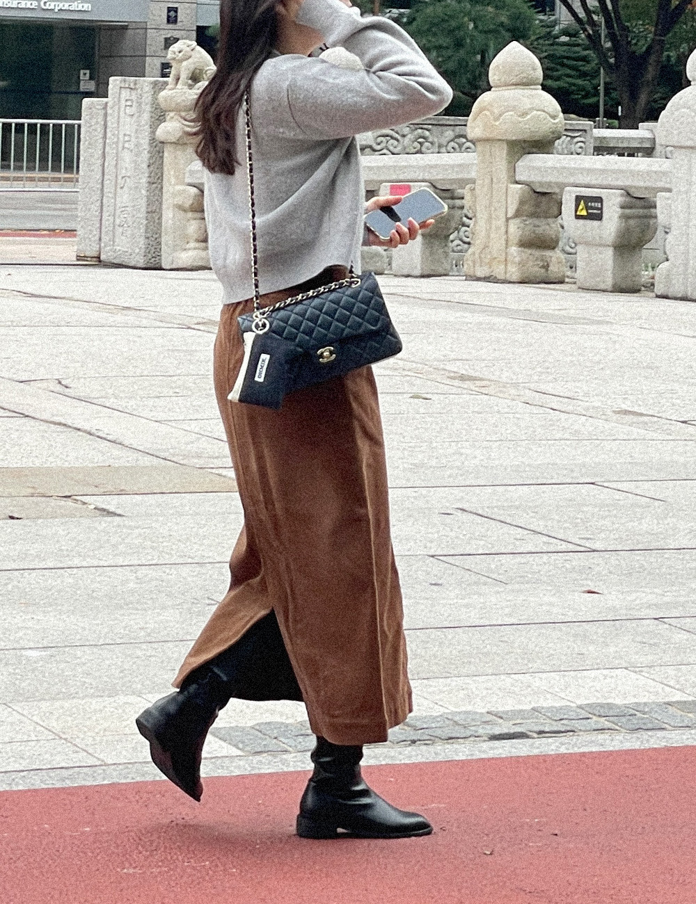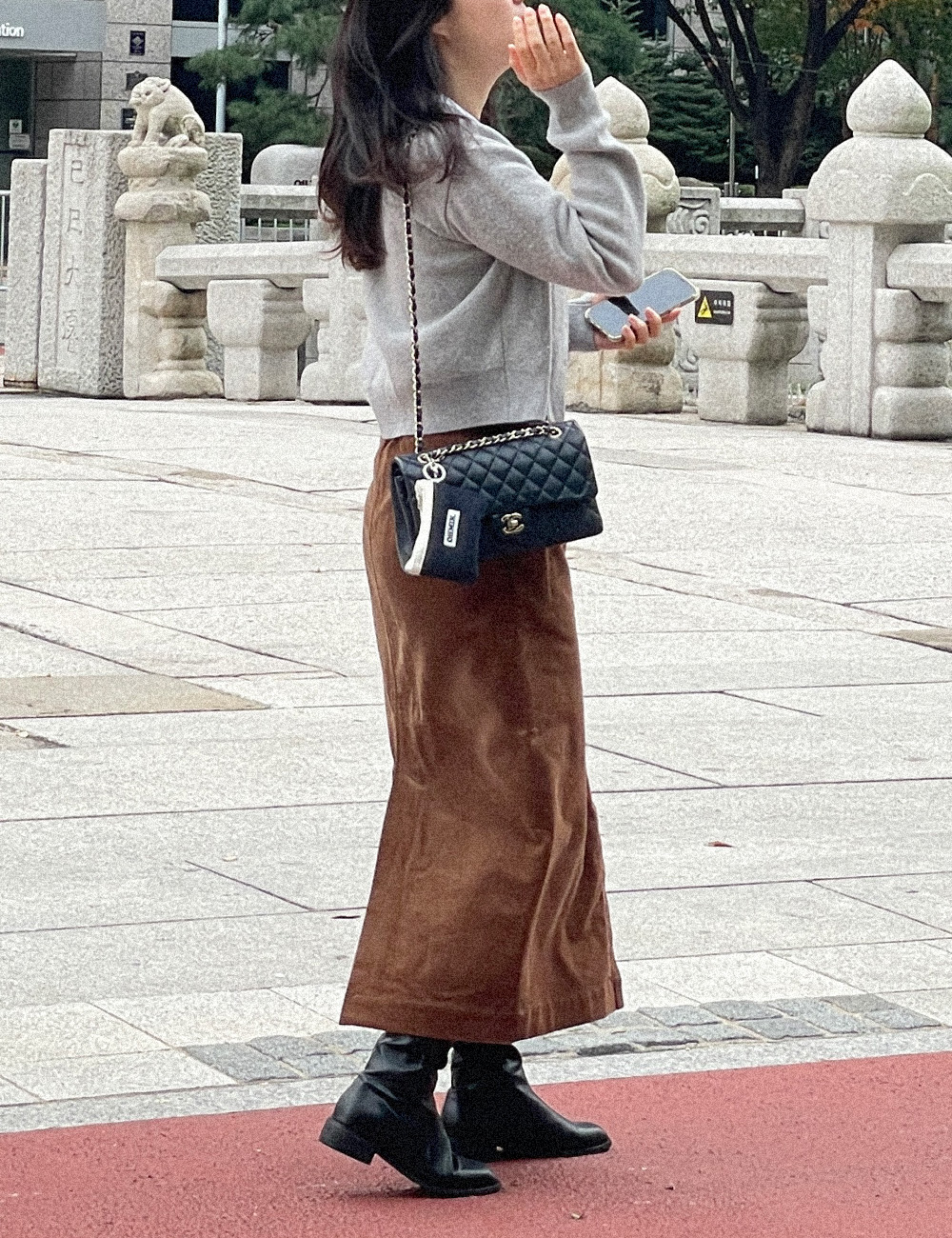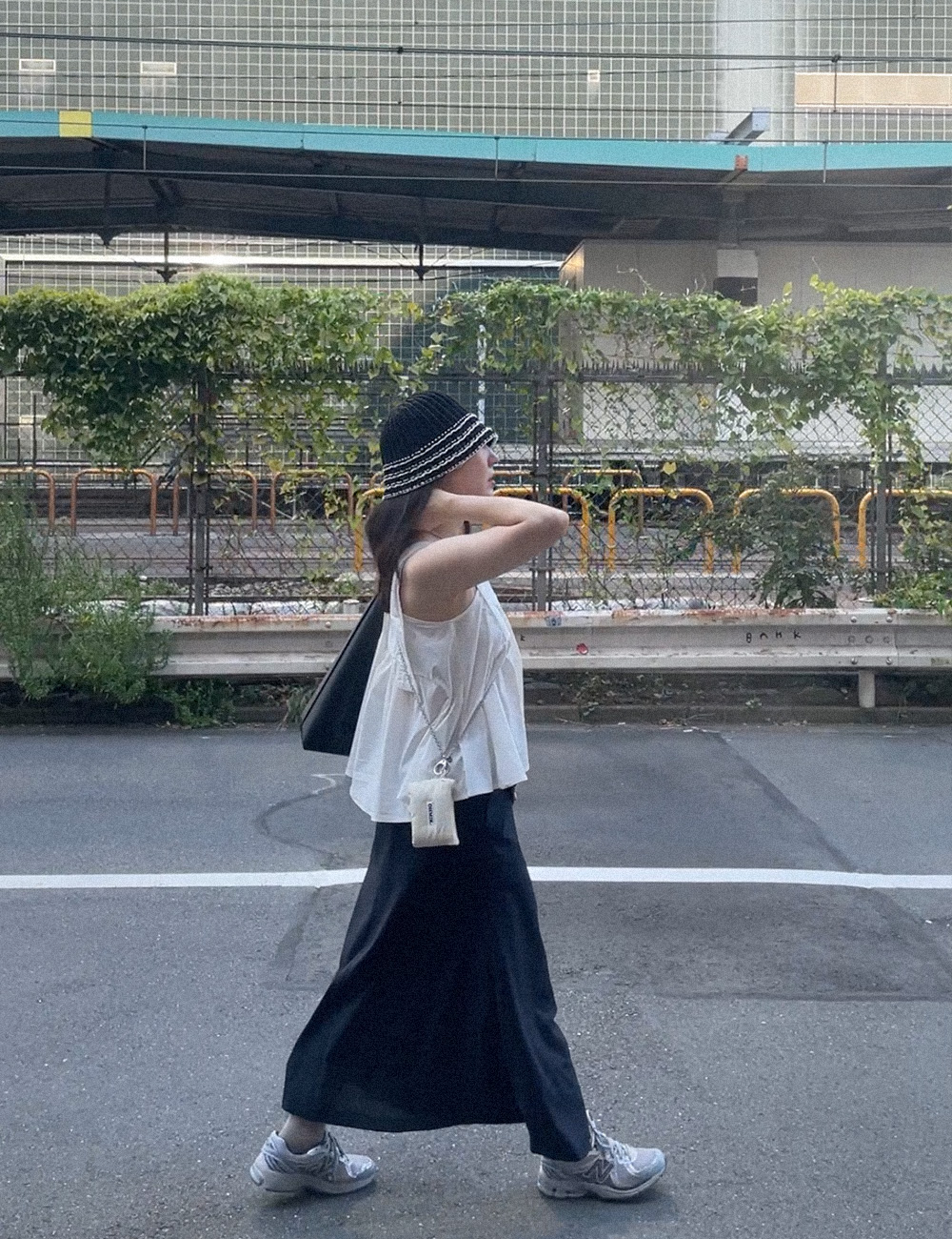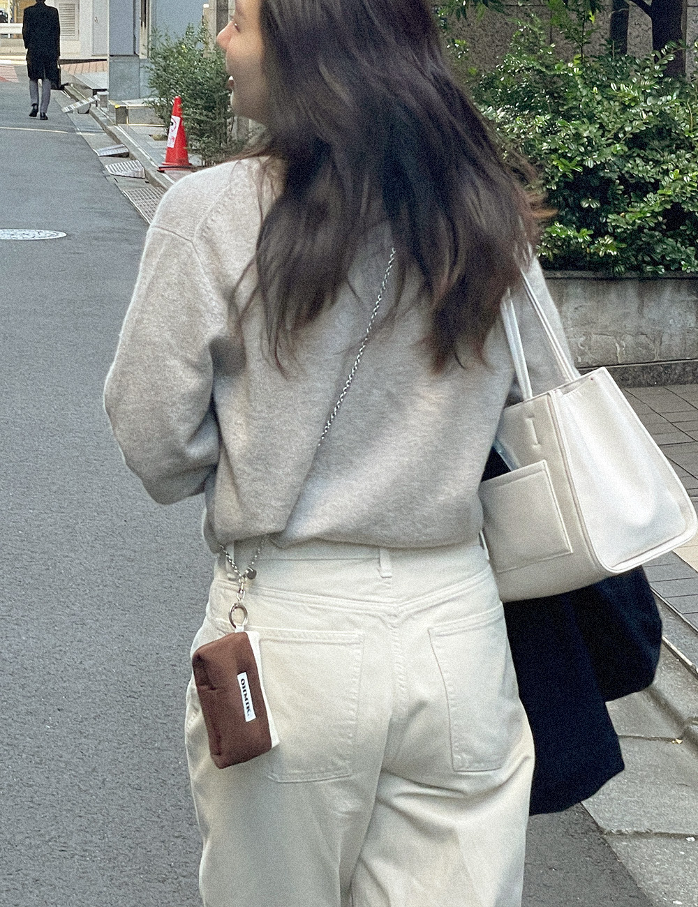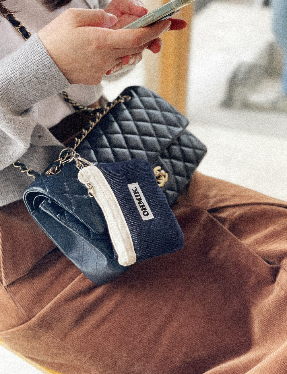 실버컬러의 체인으로 좀 더 스타일리쉬하게 미니백처럼 연출해 보세요.