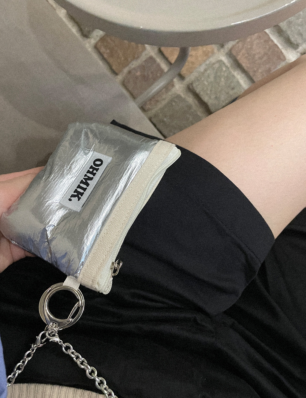 서지컬 소재의 체인 스트랩을 연결하여 미니백처럼 연출해 보세요. (별도 판매 제품)