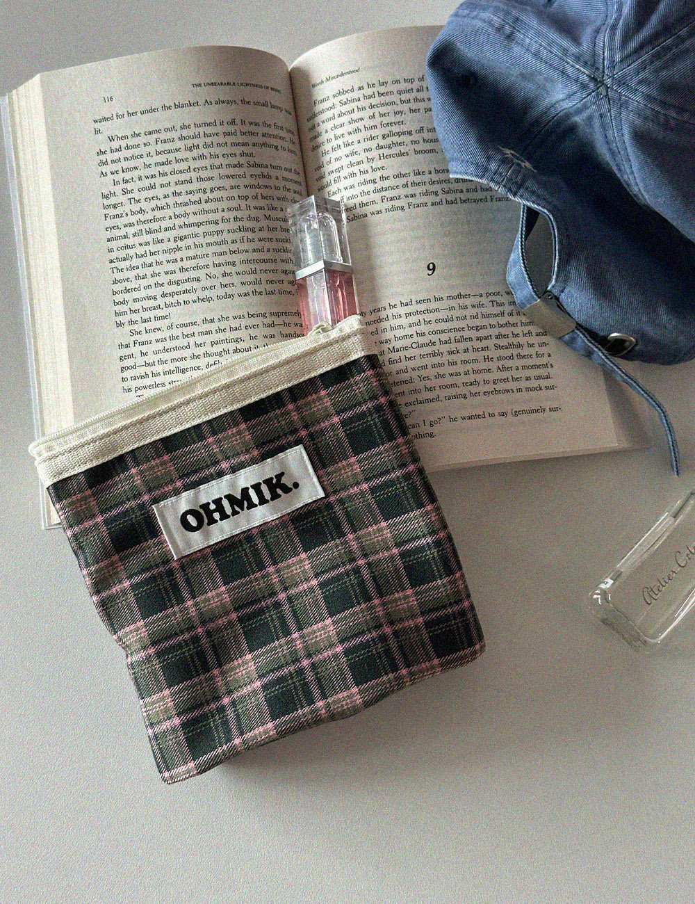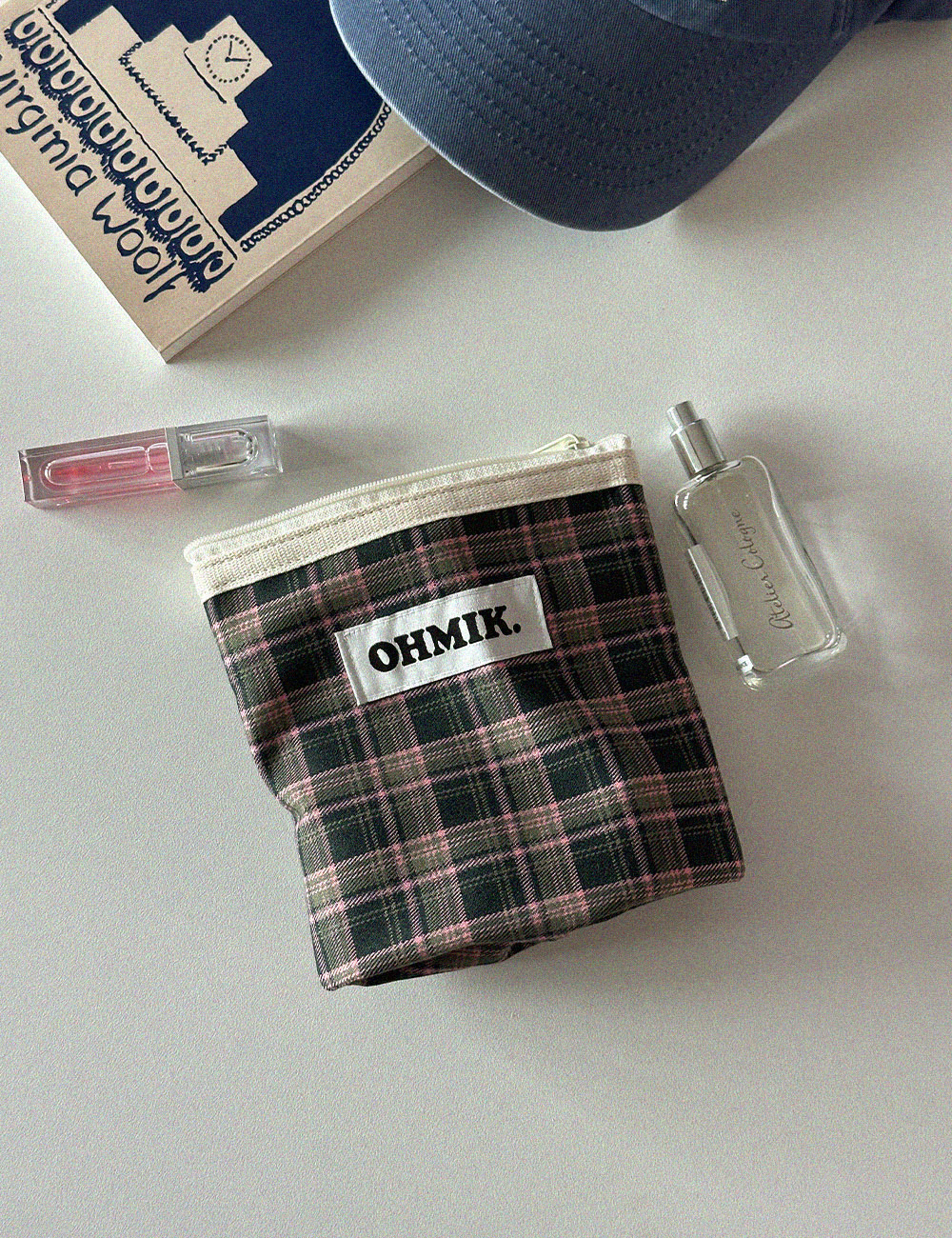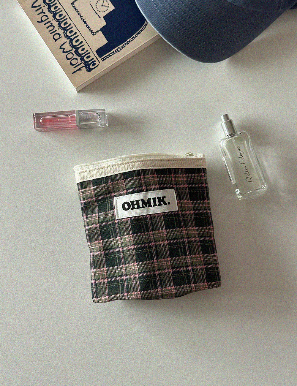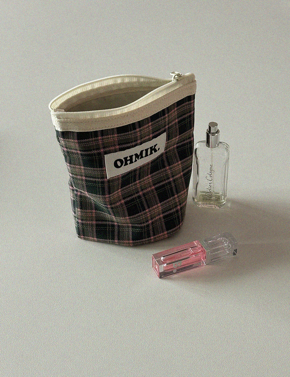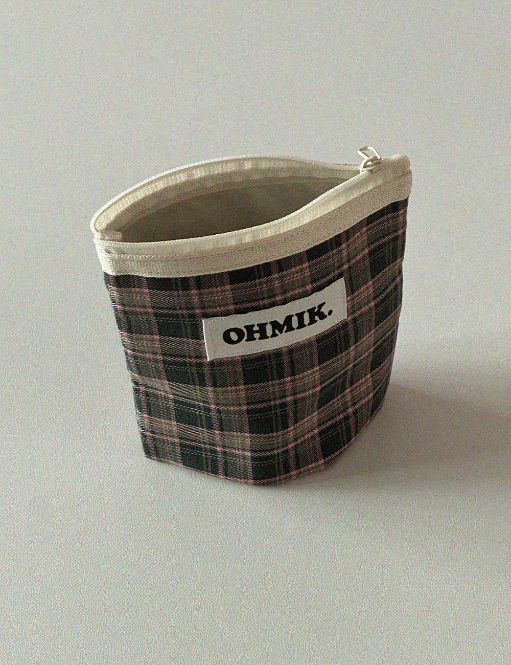 내부에 여유 폭을 두어 사용에 따라 공간이 확장 가능한 오미크 시그니처 파우치입니다.